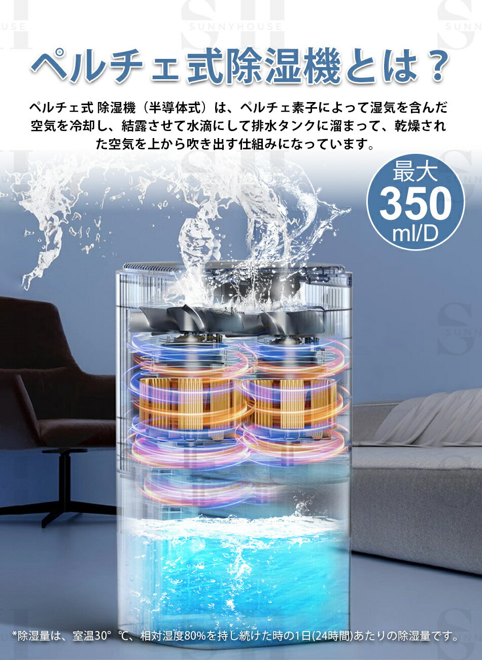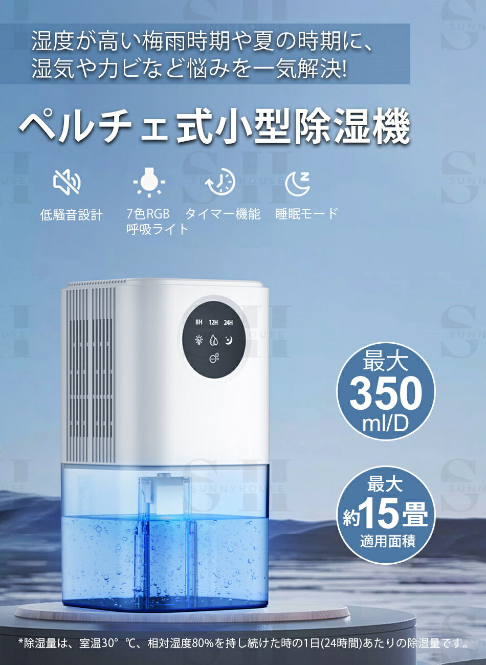 商品特徴 【2025最新ペルチェ式」】静音除湿可能のコンパクトなペルチェ式 除湿機(半導体式)は、ペルチェ素子によって湿気を含んだ空気を冷却し、結露させて水滴にして排水タンクに溜まって、乾燥された空気を上から吹き出す仕組みになっています。定格除湿能力は最大350mlです(30℃、80%RHの環境条件でテスト)、除湿可能面積目安は木造7畳 鉄筋14畳。 【1700ML大容量透明タンク 満水タンクお知らせ】 弊店の除湿機は大容量の水タンクは半透明ではなく、丸見え透明なので、反面でも水量が一目瞭然!お手入れも簡単になります。1700ML大容量で頻繁に水を捨てる手間もかかりません。また、自動停止機能を搭載しています。除湿機を使ったところ、満水になっても除湿し続け、水漏れが発生してしまったら、トラブルになり、押し入れやクローゼットなどで水漏れが発生してしまったら更に大惨事!除湿器は満水になると赤ランプが点滅して自動運転停止になり、水漏れの心配はありません。 【タイマー機能 7色RGB呼吸ライト タッチパネル】小型除湿器は電源の切り忘れを防げるだけでなく、無駄に除湿をしなくていいので電気代を節約できます。また、8・12・24時間の3段階タイマー搭載しますので、時間がなくなったら自動的に運転停止になります。必要以上に湿度を下げることがないので、空気の乾燥しやすい冬にも活躍します。7色RGB呼吸ライトは7色のライトサイクルや単色のロックが可能で、光に敏感な方は直接ライトを消すこともできます。タッチパネル付きでお年寄りでも子供でも操作簡単になります。「自動解凍機能」が備わっており、起動時には自動的に結露を取り除きます。 【低騒音設計・省エネ】伝統的なコンプレッサー式は運転音が大きい傾向もあります。デシカント式はヒーターを使うため室温が上昇する点には注意が必要。ヒーターを動かす分の電気代もかかります。ですが、2025年新登場の除湿機 静音はこれらの問題を一気に解決します。スリープモードは音に敏感な方のために設計されます。運転音は40dB以下なので眠りを妨げずに寝室や子ども部屋でも安心してお使いいただけます。低消費電力(22.5W)なので、1?間電気料金は僅か0.23円、3ヶ月使うと20000円(コンプレッサー式との比較)以上を節約できます。快適さを提供するほか、エネルギーや時間、お金を節約するのにも役に立ちます。 商品仕様 型番:B221 出力:22.5W 騒音:47 db(max)/睡眠 タンク容量:1.7L 動作電圧:AC100-240V 50/60HZ 重量:1.4kg 製品サイズ:140*140*257mm 注意事項 ※当商品には技適マークが貼付されていないですが、日本国内で使用すると電波法違反になるおそれがありますが、予めご了承ください。 ※ご使用のデバイス側でBluetoothの起動が必要になります。 ※海外輸入製品のため、箱が潰れる可能性がありますが、お気になる方はご注意ください。 ※ラッピングは対応しておりません。 ※予告なく仕様変更になる場合がございます。 ※日本語表記はございません。パッケージ言語は中国語もしくは英語です。 ※使用時の破損や事故等につきましては責任を負いかねます。 ※輸入品の為、輸送の際に生じるキズ・汚れ・箱潰れがある場合がございますが新品です。 ※サイズ・重量は、多少の誤差が生じる場合がございます。 ※あくまで画像はイメージですので、商品改良の為パッケージや一部仕様が少し変更になる場合もございます。 ※お使いのブラウザや設定により、画像と実際の商品との若干の色の違いが生じる場合がございます。 ※基本は全国一律発送無料と対応させていただきますが、沖縄・へお届けの場合は2000円の送料をご請求させていただきます。 ※こちらの対応と商品について何かご不満がありましたら、「悪い評価」を付ける前に一度当方とご連絡ください。出品者の誠意を持って最後まで対応いたします。 ※商品の輸送時間が長いため、発送していた際に外装の破損や輸送の途中に付いた小さなキズによる返品はお受付しかねます。 品質保証 ※出品する商品は全て新品未使用です。 ※販売している商品は全て新品未使用です、倉庫から出荷前に商品検査必要ですので、商品箱を開封する場合もございます、予めご了承くださいいませ。 ※初期不良の場合は到着後1週間以内にご連絡ください。 ※初期不良の場合は写真やビデオをご提供下さい、確認後無料で新品交換もしくは御返金致しますのでご連絡下さい。 ※写真やビデオをご提供出来ない場合は技術者と確認できません、返品返金対応出来ない可能性が御座います、予めご了承ください。 関連キーワード(本商品の説明ではありません) 空気清浄機 コンパクト ウイルス対策 小型 軽量 省エネ 花粉対策 ペット pm2.5 タイマー 3段階切替 アロマ ウイルス除去 静音 除菌 脱臭 カビ取り コンパクト スマホ対応 空気清浄器 小型 卓上 20畳対応 ほこり カビ ウィルス除去 花粉対策空気清浄機 花粉 35畳対応 除菌 リモコン付 脱臭機 ホコリ タイミング機能 PM2.5 コンパクト 小型 家庭用 